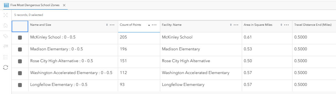PRIORITIZATION: Used spatial joins and summary statistics to count accidents per school zone. Filtered to highlight the top 5 most dangerous zones based on total number of incidents.